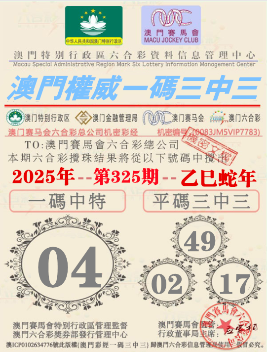 325期:【澳门权威资料】√一码三中三√ 澳门权威精准资料